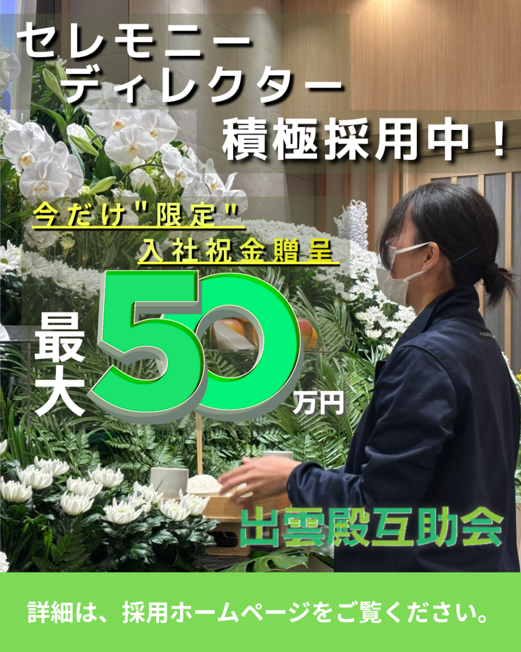 【出雲殿互助会】セレモニーディレクター 経験者、未経験者大募集!!